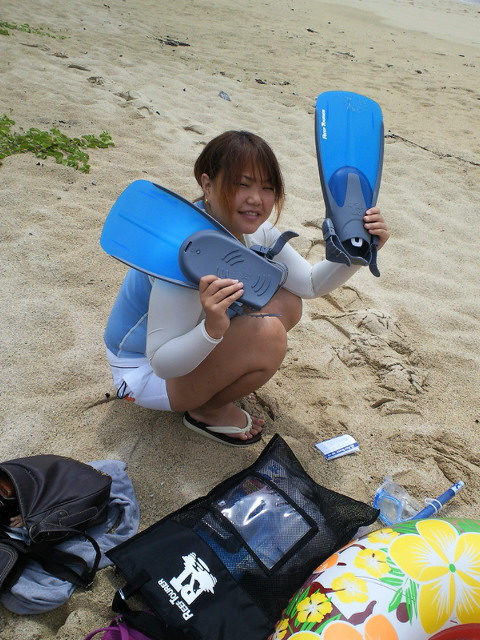 浅瀬でシュノーケルしようと潜った瞬間、目の前に!!でもあやつらは、無駄にバタバタ動くものに反応して、触手を伸ばすから、なるべく刺激しないように、急いで陸へ。。。。
