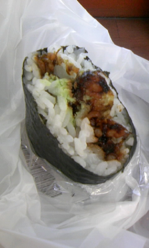 そしてのりわさびというおにぎりを食べたら、ワサビがもろ固まりで入ってて、鼻にツーンときて一人涙してます。哀愁。